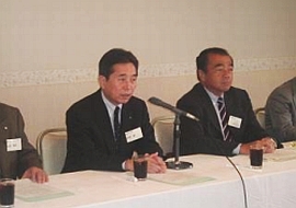 総会は吉岡幹事長の司会で、初めに浅野会長が挨拶した後、@平成16年度事業報告、決算報告、監査報告A平成17年度事業計画、予算案B役員改選の順で行われました。